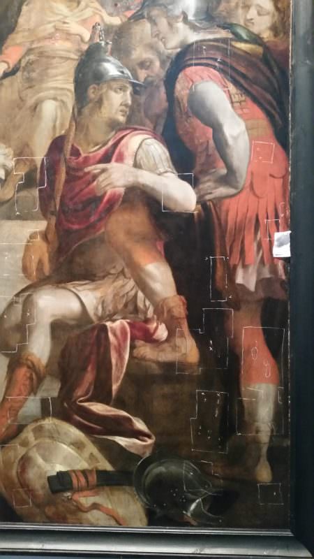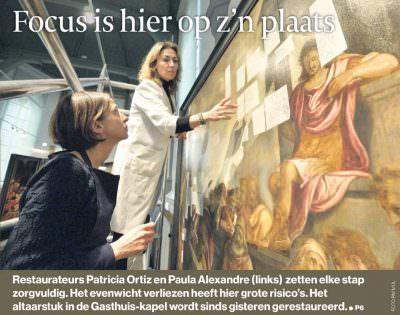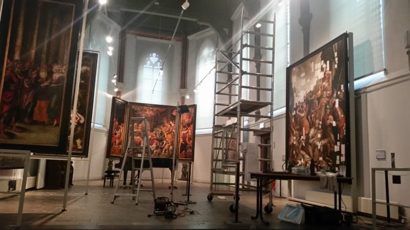 In overleg met het museum is een plan van aanpak gemaakt. Het vervoeren van een paneel met dergelijke afmetingen zou extra risico’s (en kosten) met zich meebrengen. Derhalve is besloten om de restauratie in het museum uit te voeren. Door een steiger te plaatsen voor het schilderij kunnen van daaraf de werkzaamheden uitgevoerd worden.