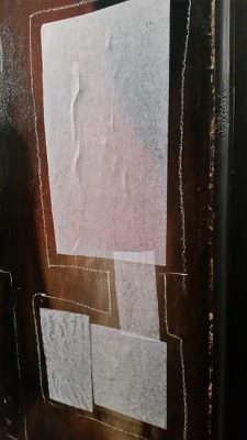 - Rechthoek: plekken waar Japanse papier heeft gezeten en het vernis geretoucheerd dient te worden;