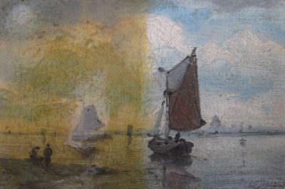 Onderstaand enkele voorbeelden die het resultaat laten zien van vernis verwijderen van een schilderij.